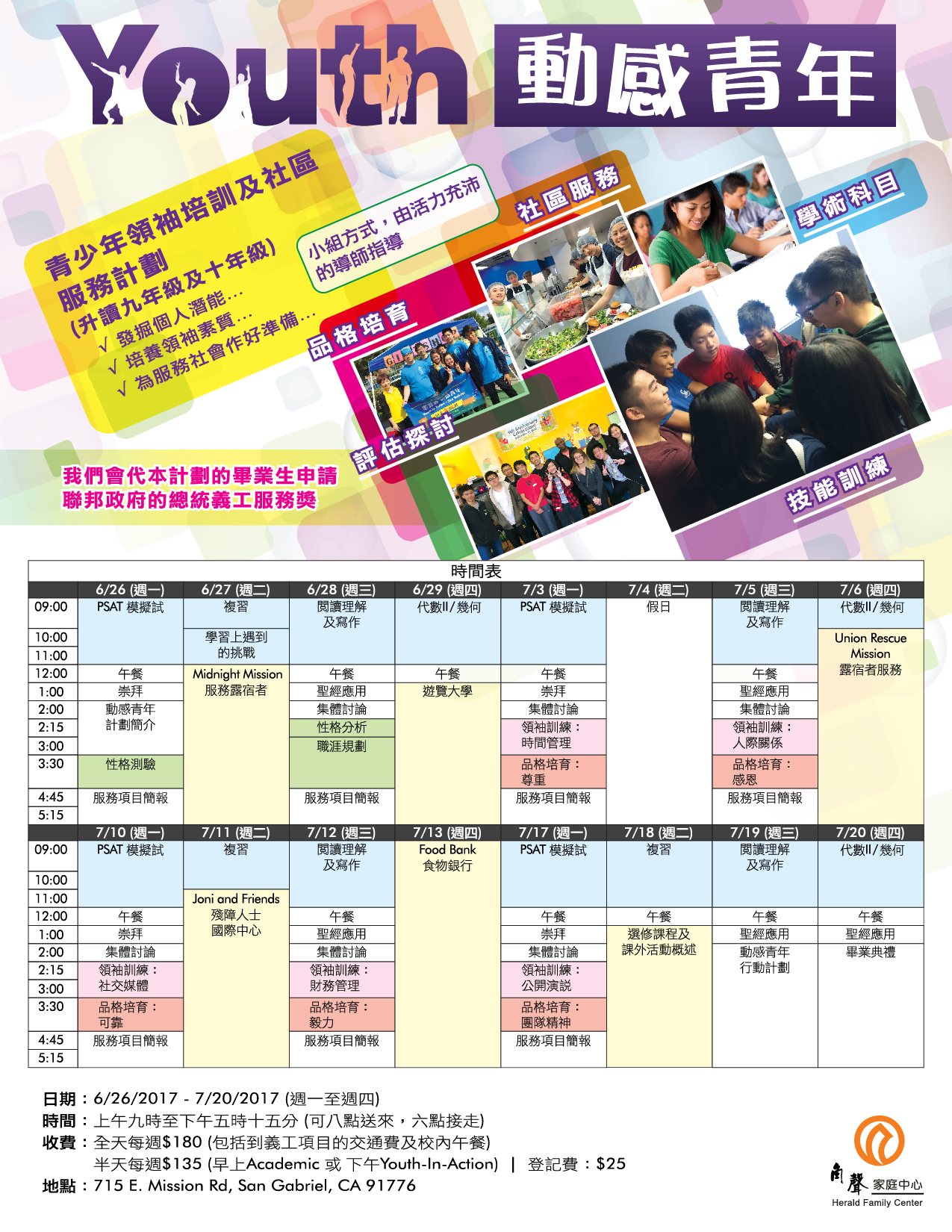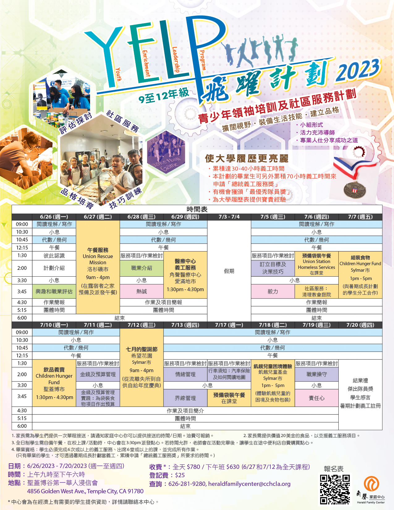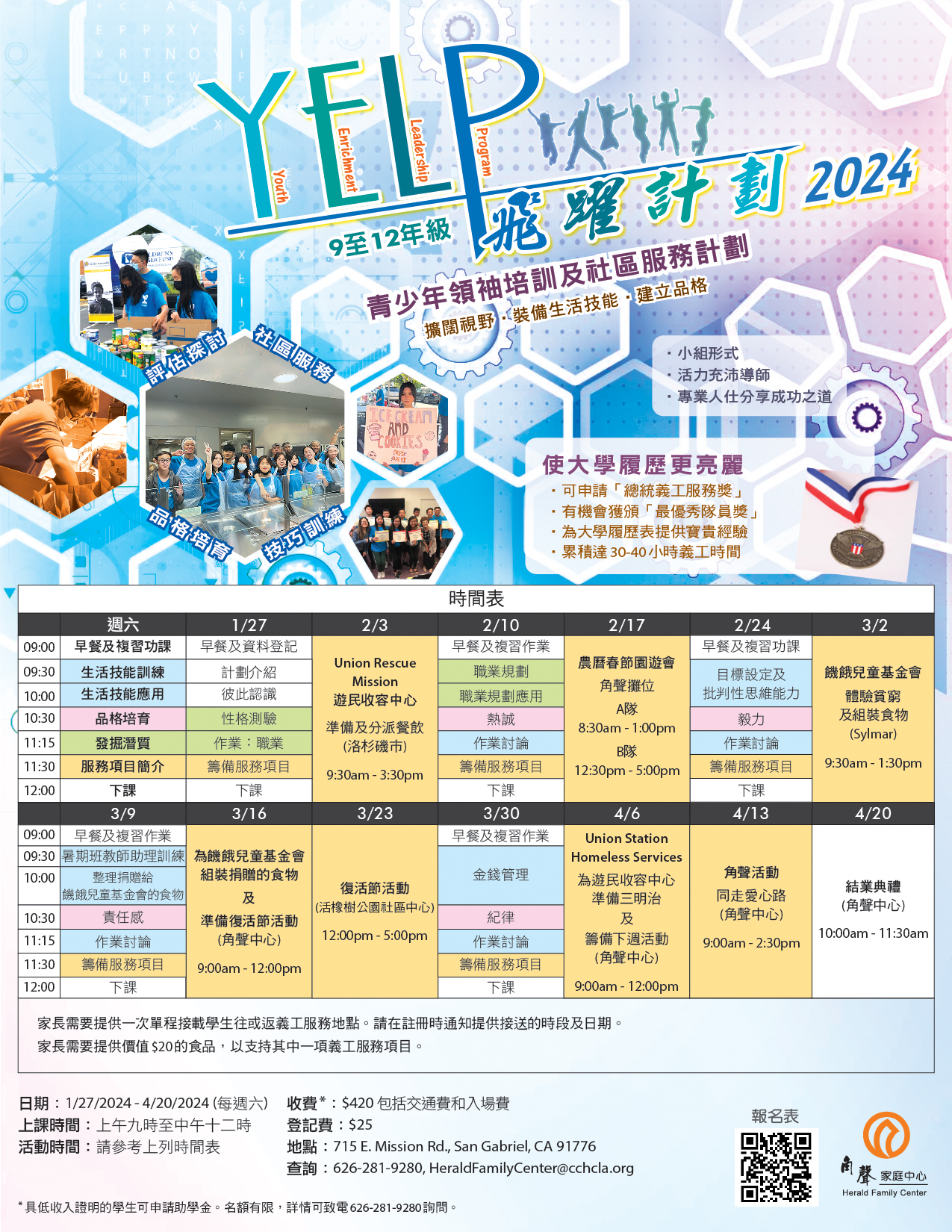 YELP 是一個曠闊視野、裝備技能,培育品格的青少年計劃。中學生可透過社區服務累積義工時間,更可申請由政府頒發的「總統義工服務獎」。今年設有由GBC International Bank Foundation贊助的低收入補助。